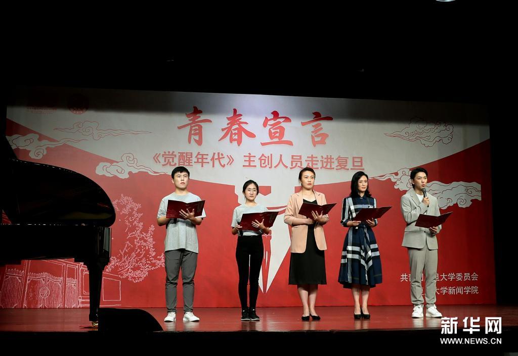 5月16日,《觉醒年代》主创代表与复旦师生表演诗歌朗诵。新华社记者 刘颖 摄