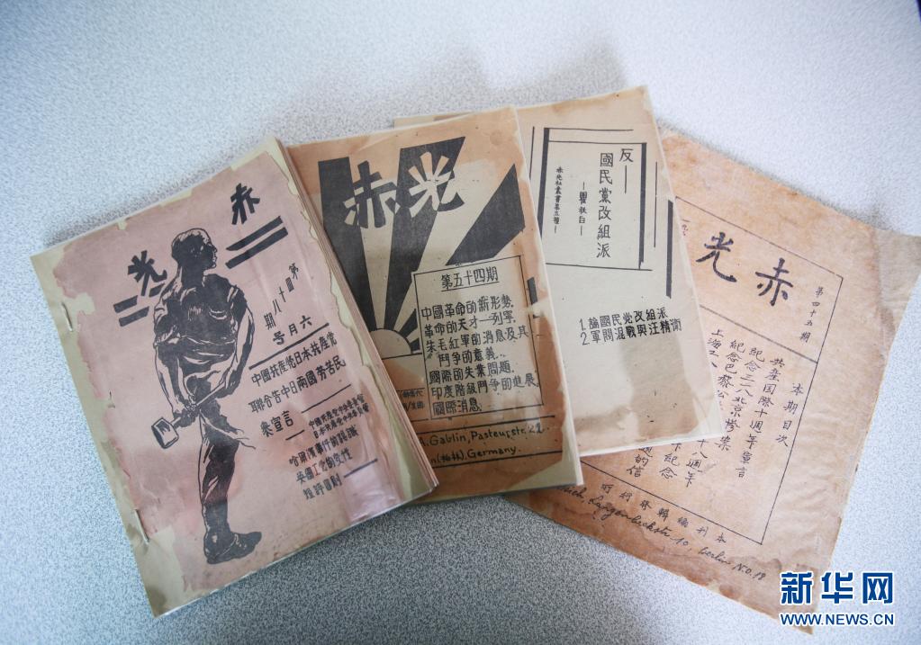 这是2011年4月27日在法国里昂市立图书馆拍摄的《赤光》杂志的珍贵原刊。 新华社记者 高静 摄