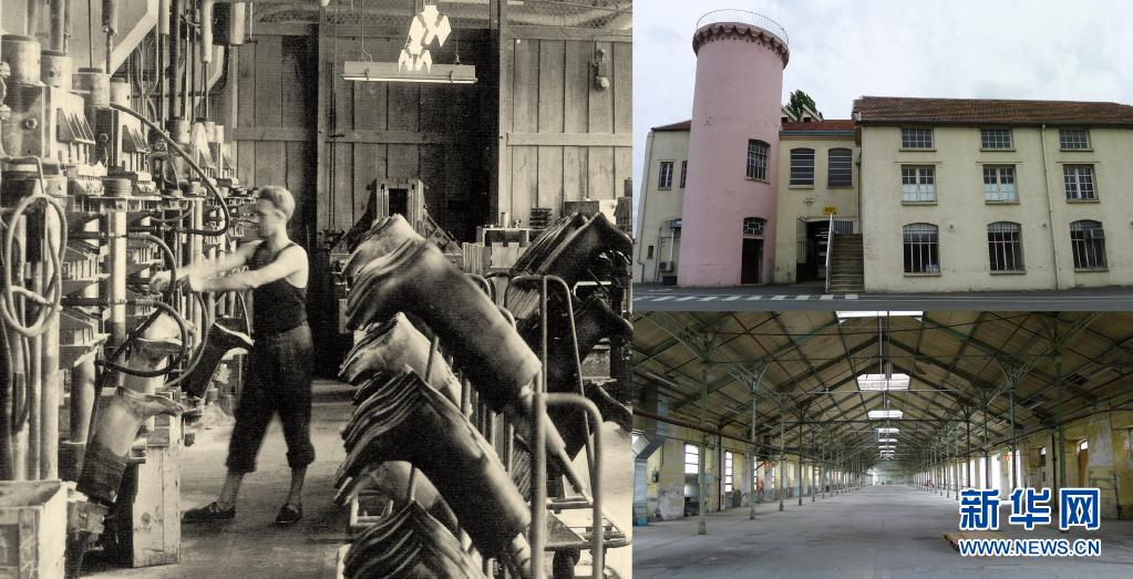 这张拼版照片中左图为19世纪20年代“玉青松”橡胶制品厂的制鞋车间的资料照片,右上图为原“玉青松”橡胶制品厂建筑外景(摄于2011年6月18日), 右下图为原“玉青松”橡胶制品厂建筑内景(摄于2011年6月18日)。从1920年至1927年,数百名中国青年曾在这个工厂工作过,其中包括邓小平。 新华社记者 唐霁 摄