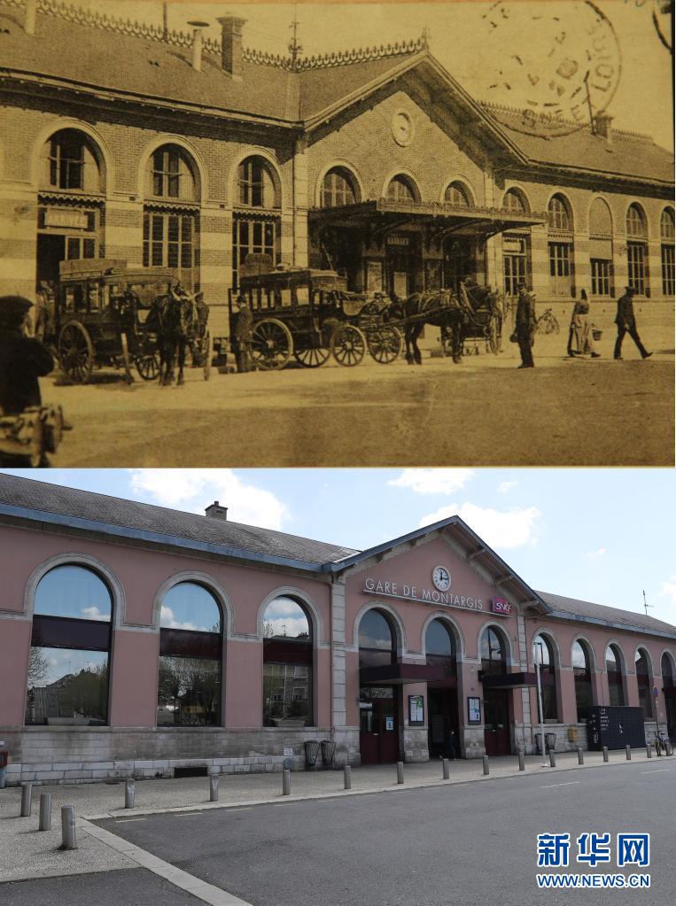 拼版照片显示的是今昔法国蒙达尔纪火车站(上,资料照片;下,拍摄于2021年5月7日)。蒙达尔纪火车站于1860年通车。 新华社记者 高静 摄