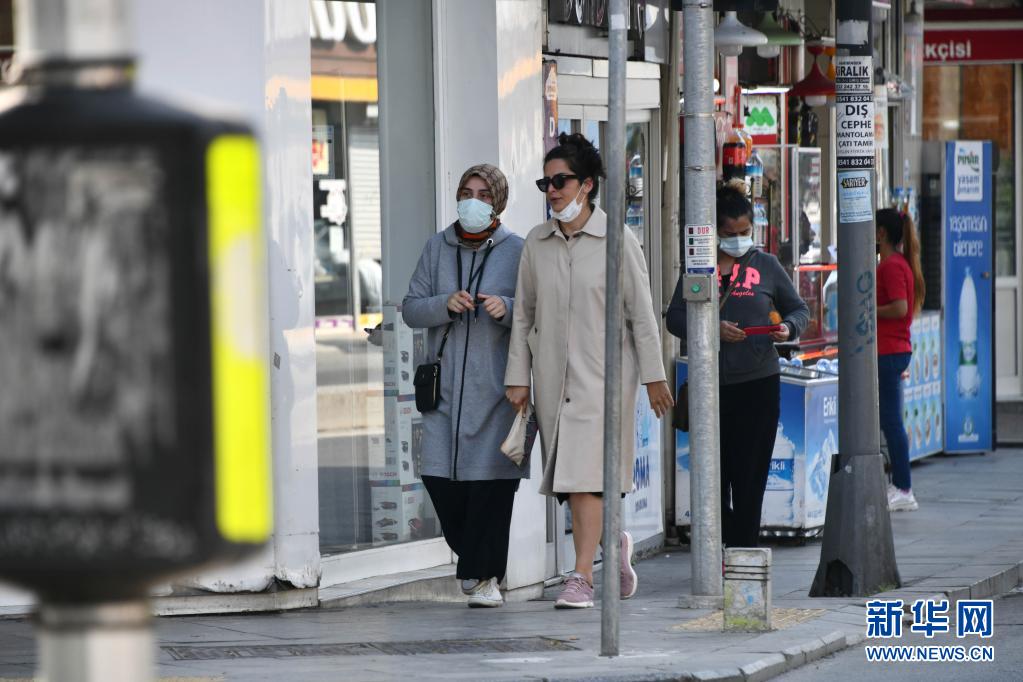 5月17日,市民在土耳其伊斯坦布尔街头出行。 当天,土耳其结束了从4月29日开始的首次全国性“封城”。此次“封城”从当地时间4月29日晚7时启动,持续至5月17日早5时,涵盖斋月部分时间和开斋节。 新华社记者 徐速绘 摄