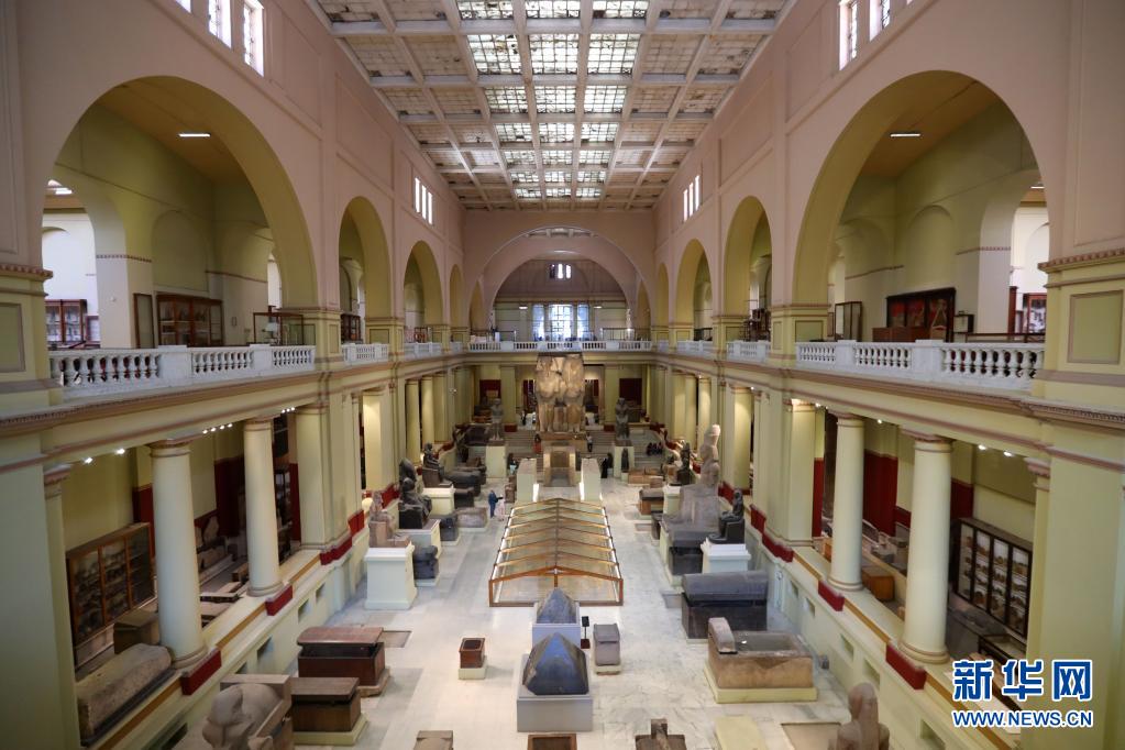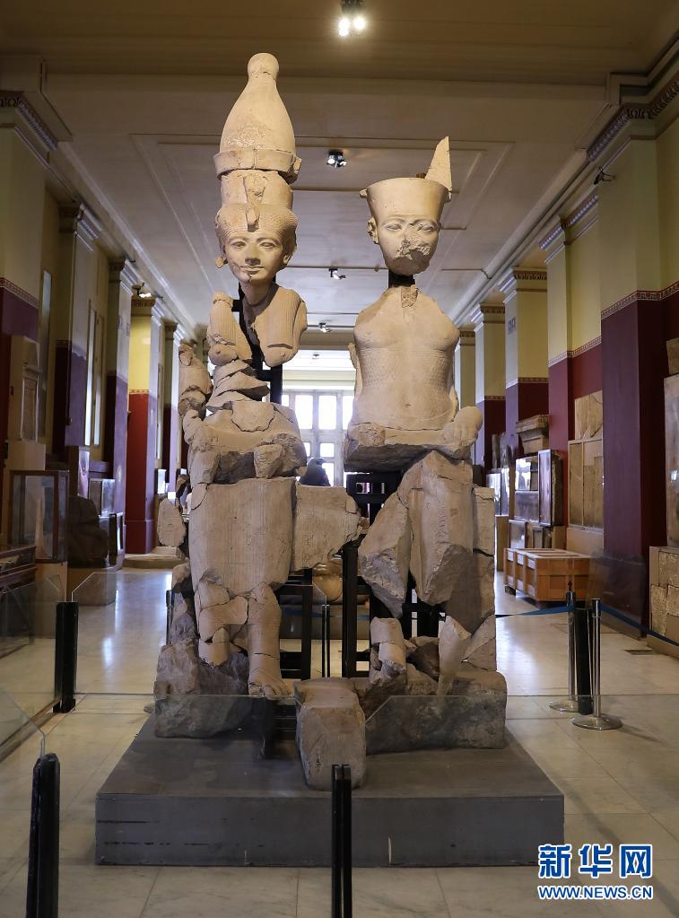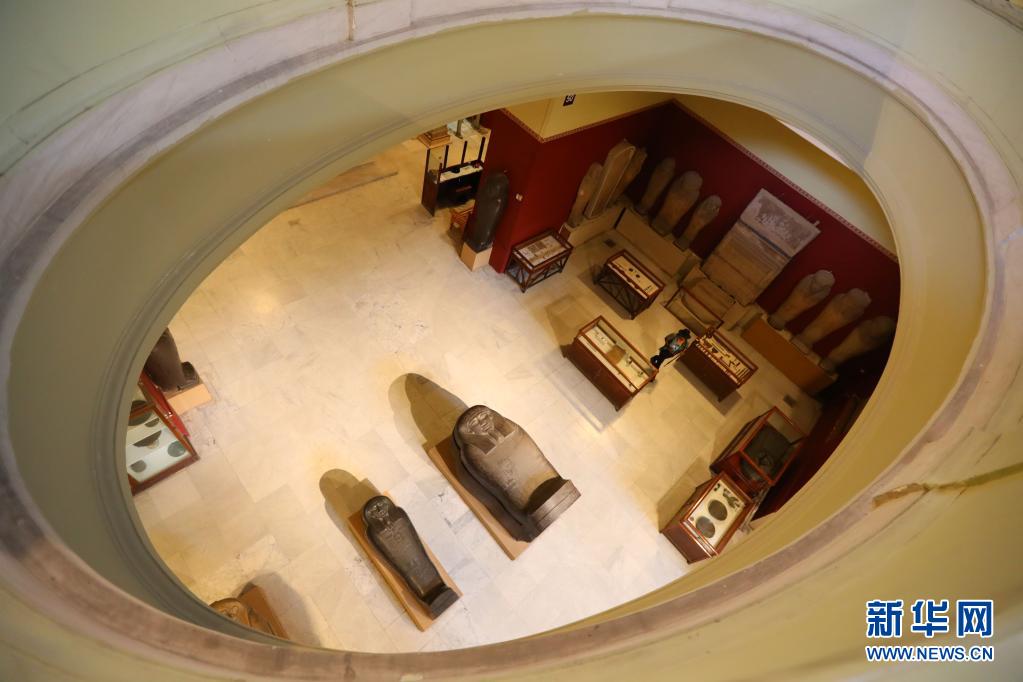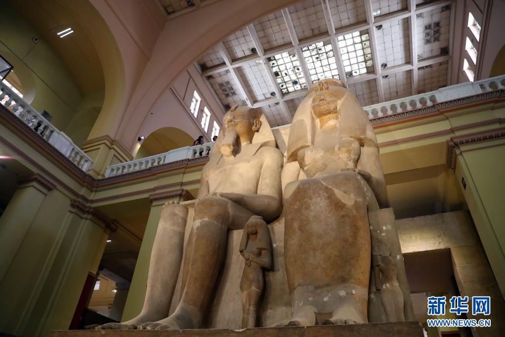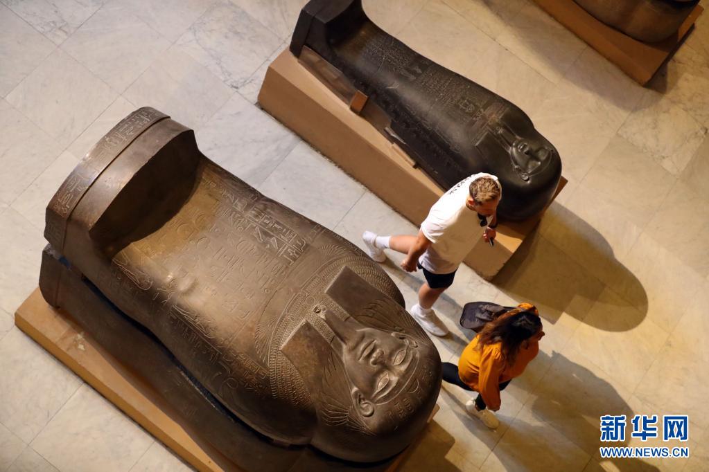 5月18日,游客在埃及开罗的埃及博物馆参观。 埃及博物馆位于埃及首都开罗市中心解放广场,珍藏着自古埃及法老时代至公元6世纪的历史文物共10万多件。新华社记者 隋先凯 摄