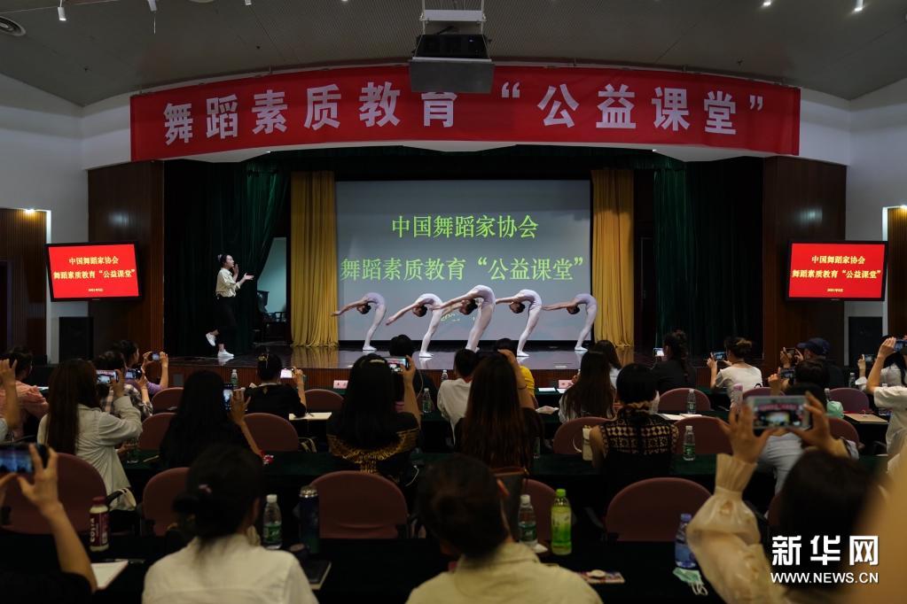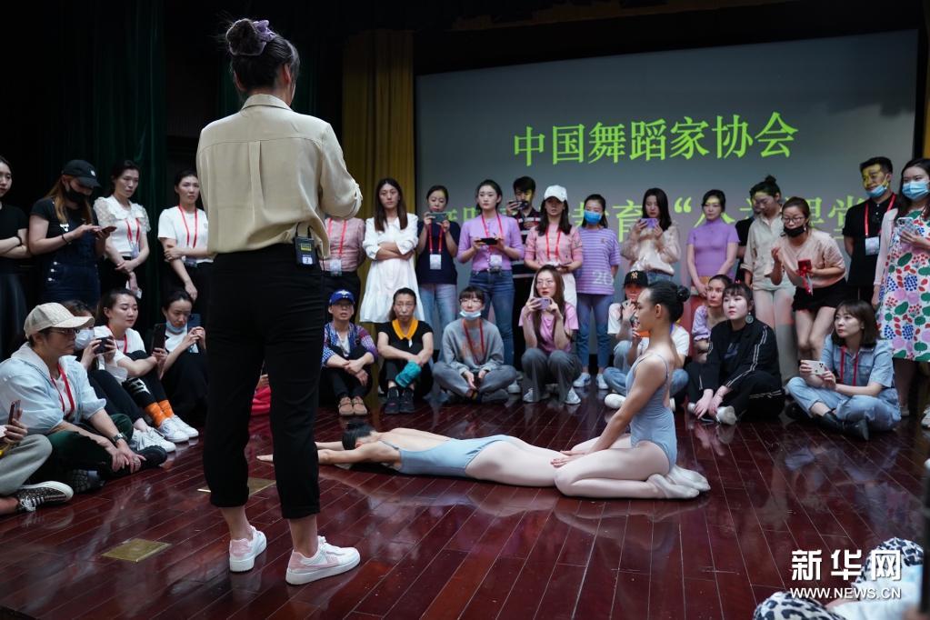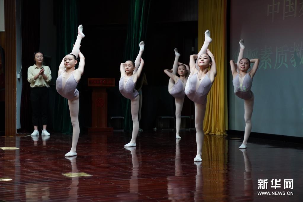 5月18日,在舞蹈素质教育“公益课堂”上,南方舞校的老师与学生进行课程示范。为普及科学舞蹈教学方法,提升基层单位舞蹈素质教育训练科学性,由中国舞蹈家协会主办的舞蹈素质教育“公益课堂”于5月18至19日在北京中国文联举办,为来自舞蹈专业艺术院校、中小学、社会培训机构等从事基层舞蹈教育的百余名教师进行现场指导与训练。新华社记者 才扬 摄