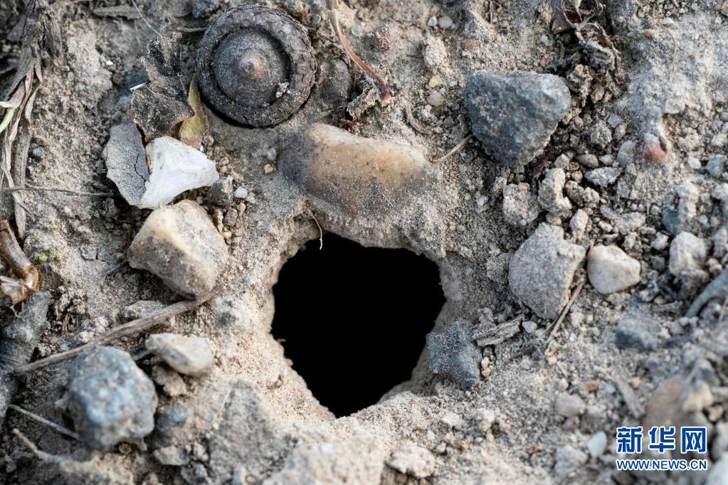 这是5月19日在美国弗吉尼亚州阿灵顿拍摄的17年蝉钻出地面后留下的洞口。 近日,亿万只17年蝉开始破土而出,现身美国东部和中西部部分地区。17年蝉是周期蝉的一种。周期蝉是世界上最长寿昆虫之一,它们一生大部分时间以蛹的形态在地下生活,以树根为食,不同种类蛰伏时间为13年或17年。一旦破土而出,周期蝉只能存活2周到4周时间,交配并产卵后就会死去。 新华社记者 刘杰 摄 |