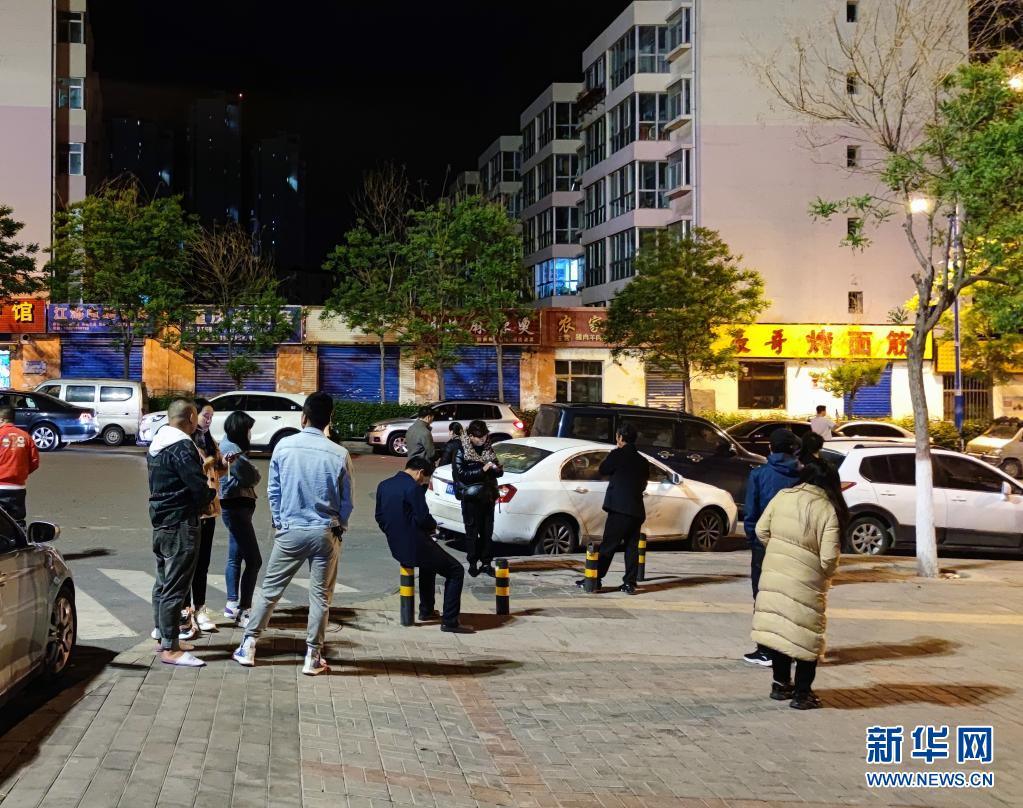 5月22日凌晨,西宁市民在空旷地带避险(手机照片)。