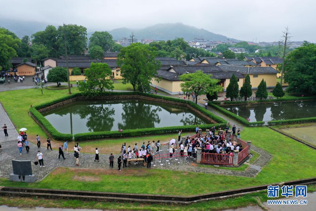 5月21日,人们在瑞金市红井革命旧址群参观(无人机照片)。 江西瑞金是闻名中外的红色故都、共和国摇篮、中央红军长征出发地、中华苏维埃共和国临时中央政府诞生地,这里保留了大量红色文化遗址和纪念建筑,是全国重要的爱国主义和革命传统教育基地。在中国共产党成立100周年之际,越来越多的人们来到这里,接受爱国主义和革命传统教育。 新华社记者陈晔华摄
