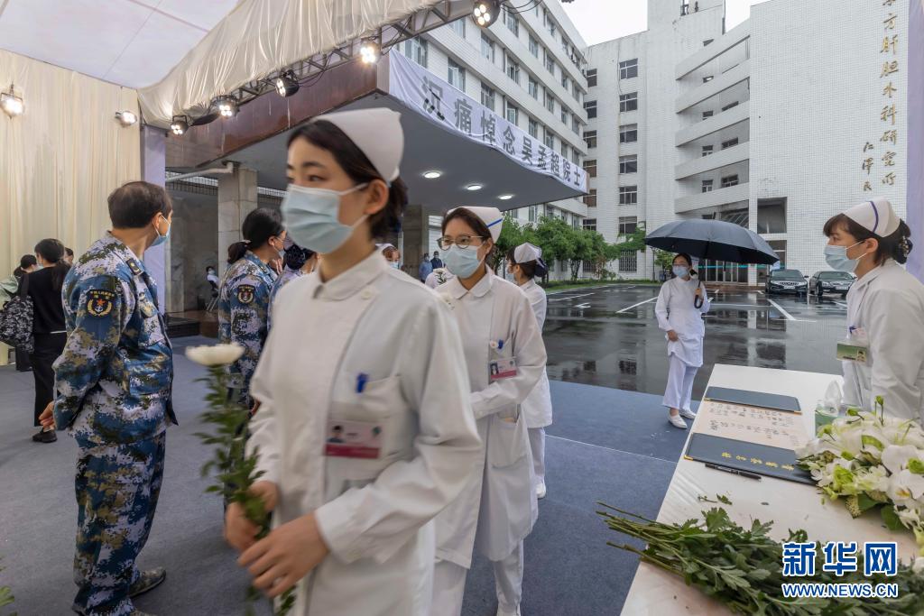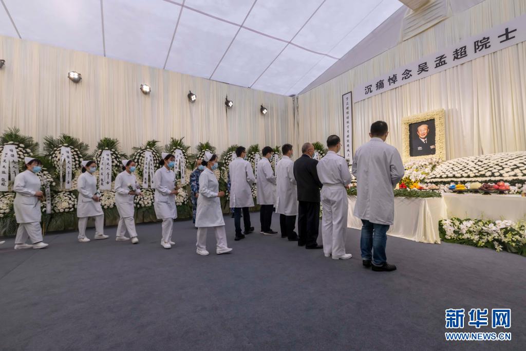 5月23日,人们手持鲜花有序进入灵堂吊唁吴孟超院士。 5月23日至25日,海军军医大学第三附属医院(上海东方肝胆外科医院)在上海市长海路225号三号楼广场为吴孟超院士设置灵堂,接受吊唁。 新华社记者 王翔 摄