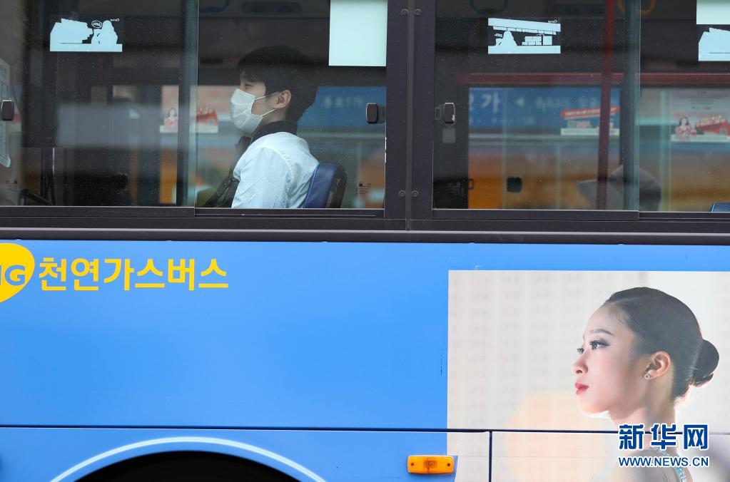 5月26日,戴口罩的市民在韩国首尔乘坐公交车。