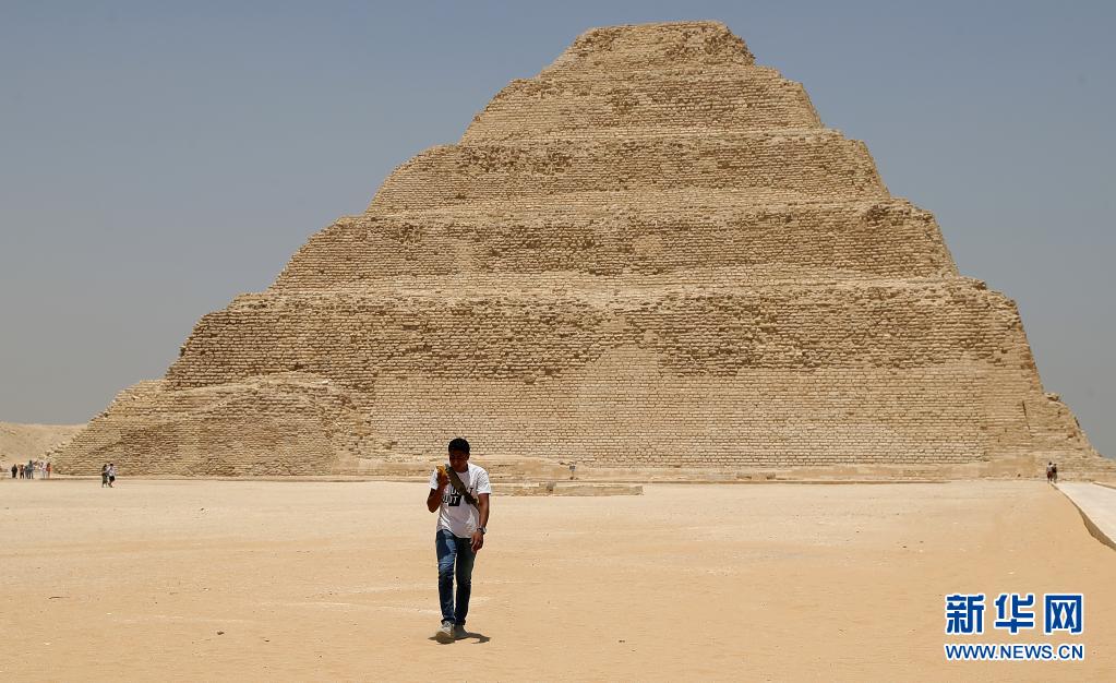5月26日,游客在埃及首都开罗市区以南的阶梯金字塔建筑群景区游玩。