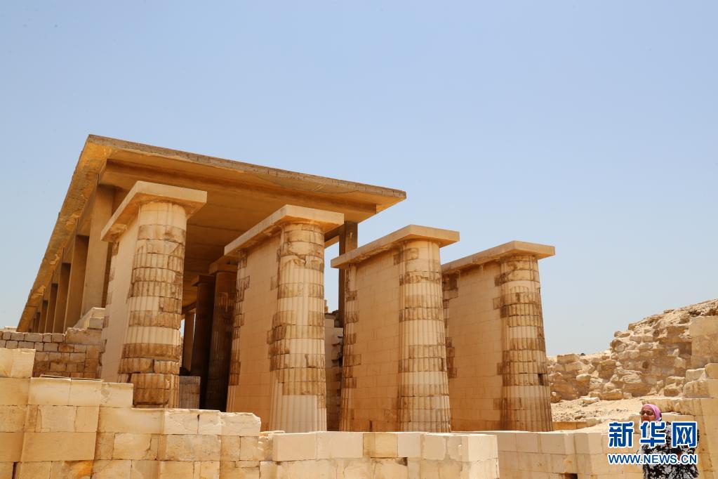 5月26日,游客在埃及首都开罗市区以南的阶梯金字塔建筑群景区游玩。