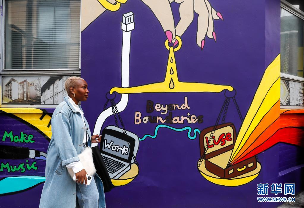这是5月26日在英国伦敦泰晤士河南岸拍摄的墙上的艺术作品。 当日,泰特现代美术馆附近的泰晤士河南岸街头出现一系列以“超越界限”为主旨的艺术作品。这一系列作品都与疫情“封城”相关,希望给城市注入积极乐观的精神,为街头带来一抹靓色,并号召人们重新沟通。 新华社记者 韩岩 摄