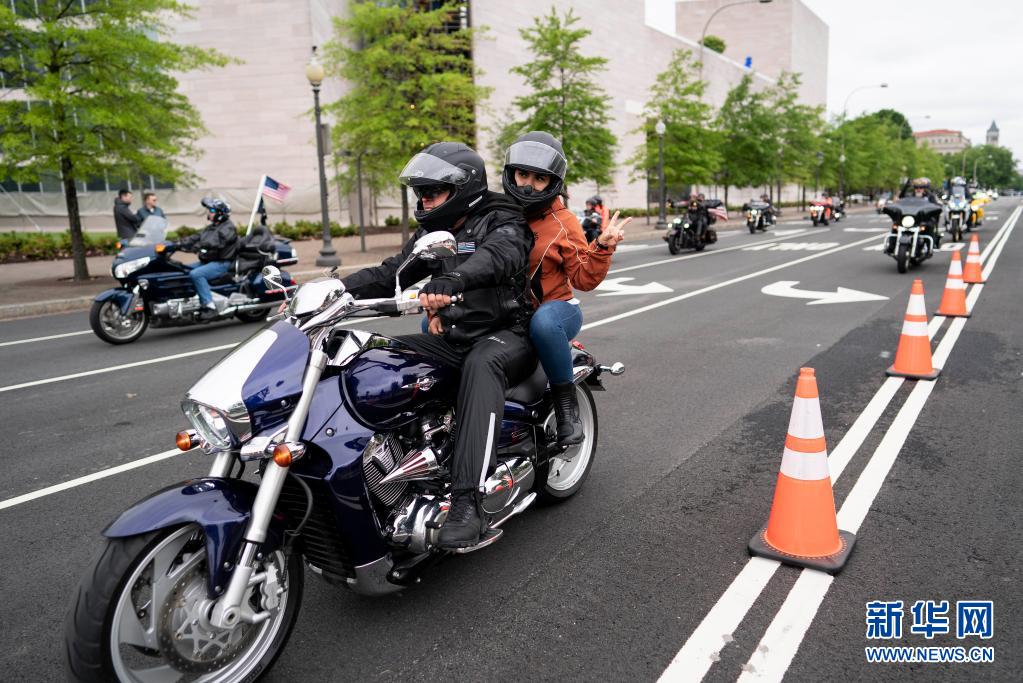 5月30日,在美国首都华盛顿,参加“滚雷”摩托车大游行的车辆驶过街头。 美国把每年5月的最后一个星期一定为阵亡将士纪念日。每年纪念日前夕,华盛顿都会举行“滚雷”摩托车游行。 新华社记者刘杰摄