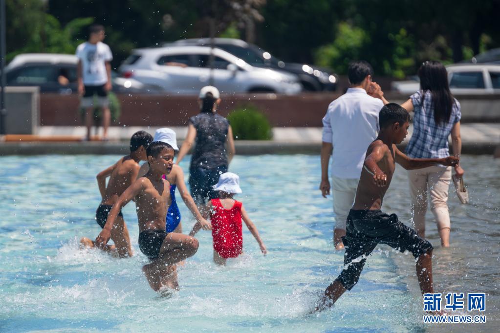 5月29日,孩子们在乌兹别克斯坦首都塔什干一处喷泉内戏水。 5月29日,位于中亚的乌兹别克斯坦首都塔什干遭遇高温天气,白天最高气温达39摄氏度。当地气象部门预报,炎热天气仍将持续一段时间。 新华社记者 蔡国栋 摄