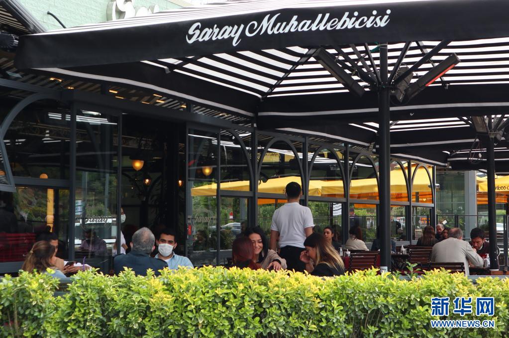 6月1日,人们在土耳其伊斯坦布尔一家餐厅的堂食区就餐。 从6月1日开始,土耳其允许餐厅在控制就餐人数的基础上恢复提供堂食服务,之前为了防控新冠疫情,土耳其只允许餐厅提供外卖服务。 新华社记者 徐速绘 摄
