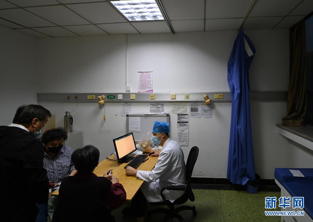在天津医科大学总医院,晚上坐诊的专家在给患者“看片”(6月2日摄)。