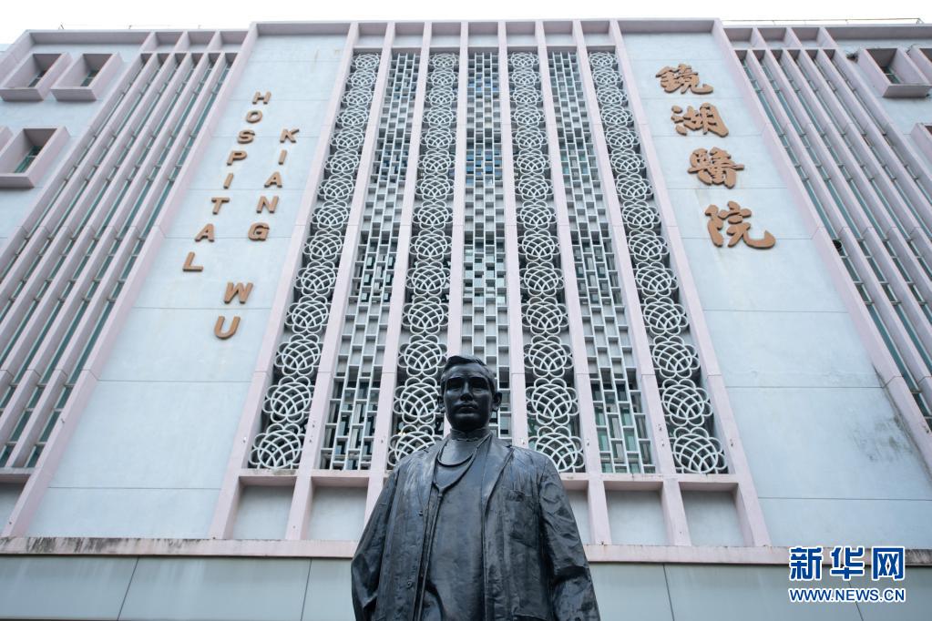 镜湖医院前的孙中山铜像(5月12日摄)。新华社记者 张金加 摄 |