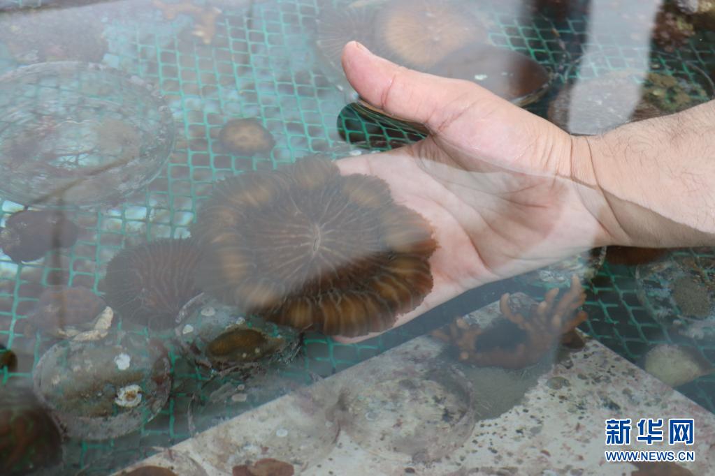 5月20日,约旦珊瑚研究专家福阿德·胡拉尼在位于约旦亚喀巴海洋科学站内的实验室展示培育中的珊瑚。