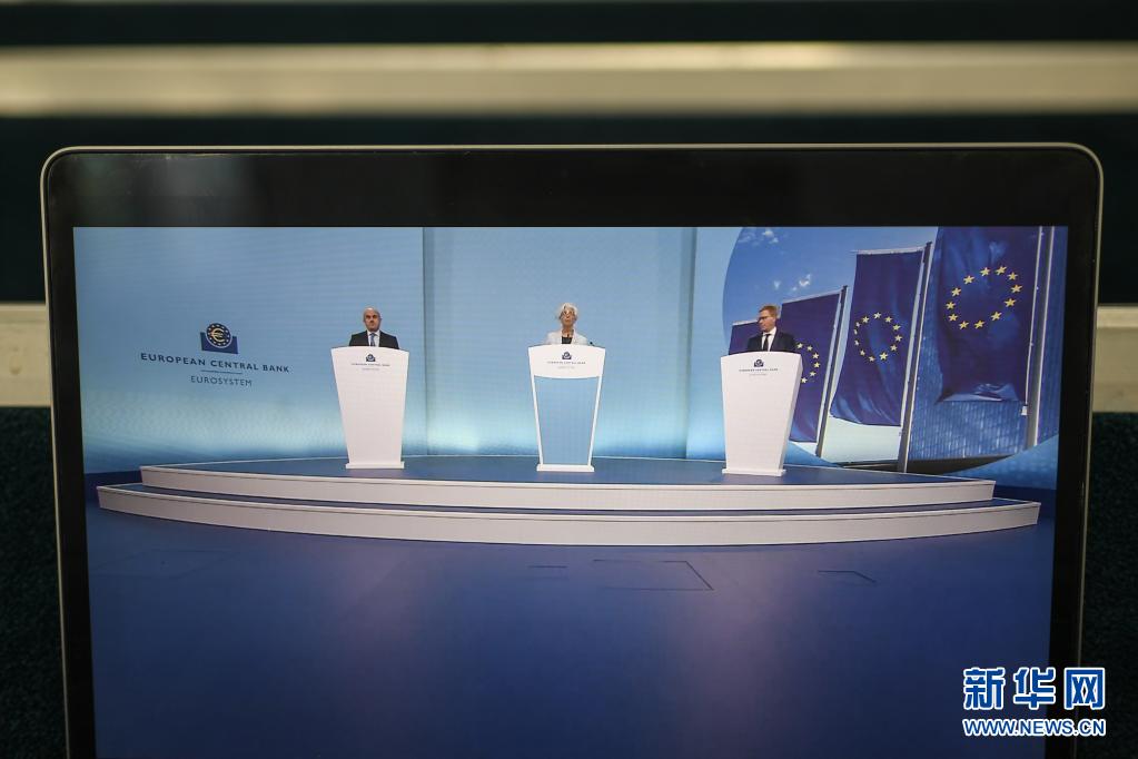 这是6月10日在德国法兰克福拍摄的欧洲央行货币政策例会后新闻发布会的视频直播画面。