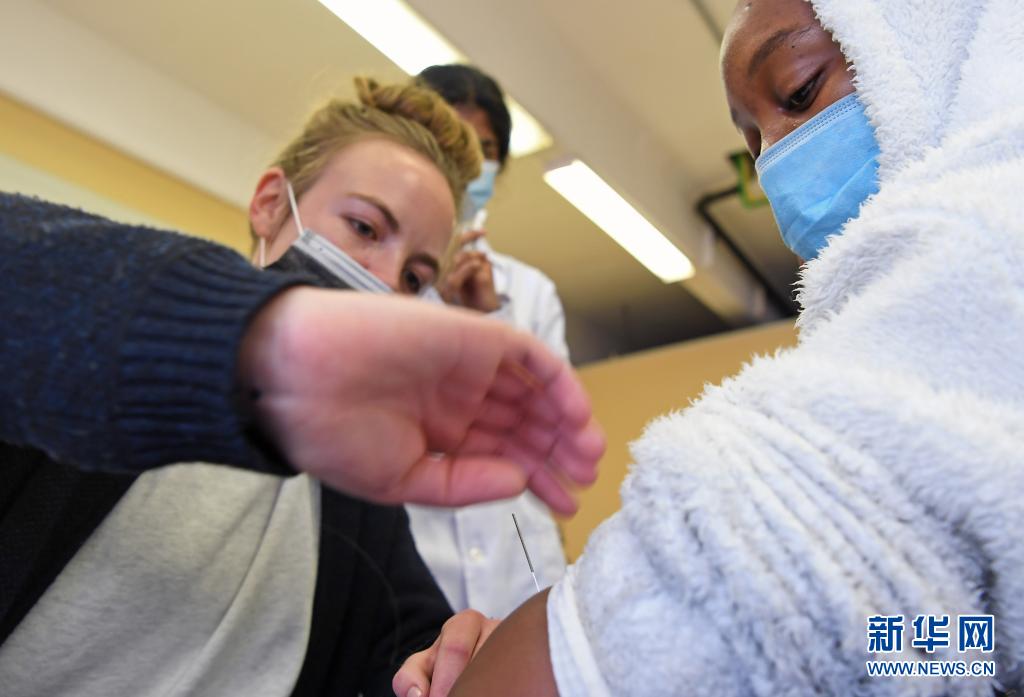 6月9日,在南非约翰内斯堡大学针灸课上,一名学生在同学手臂上练习针法。