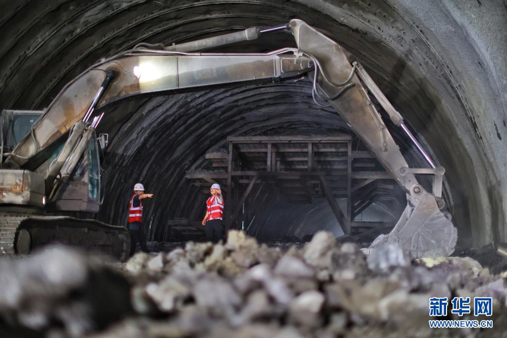 6月14日,工作人员在鄢家寨隧道内做最后的施工。当日,由中铁十一局承建的贵南高铁鄢家寨隧道顺利贯通,该隧道地处贵州省独山县境内,全长1670米,隧道的顺利贯通为后续施工奠定了坚实基础。贵南高铁设计时速350千米,是我国“八纵八横”高速铁路主通道包头至海口通道的重要组成部分。新华社记者 刘续 摄