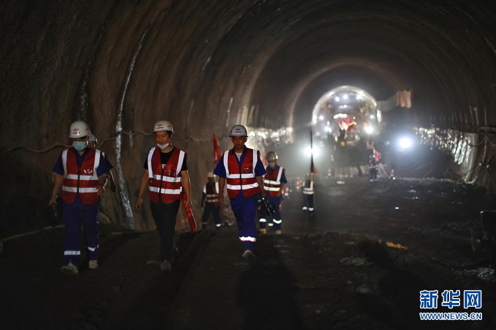 6月14日,工作人员走在贯通后的鄢家寨隧道内。新华社记者 刘续 摄