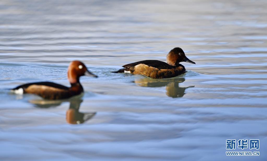6月14日在拉鲁湿地拍摄的两只小  。夏日里,凤头  和小  在西藏拉萨拉鲁湿地国家级自然保护区水面上嬉戏。新华社记者 张汝锋 摄