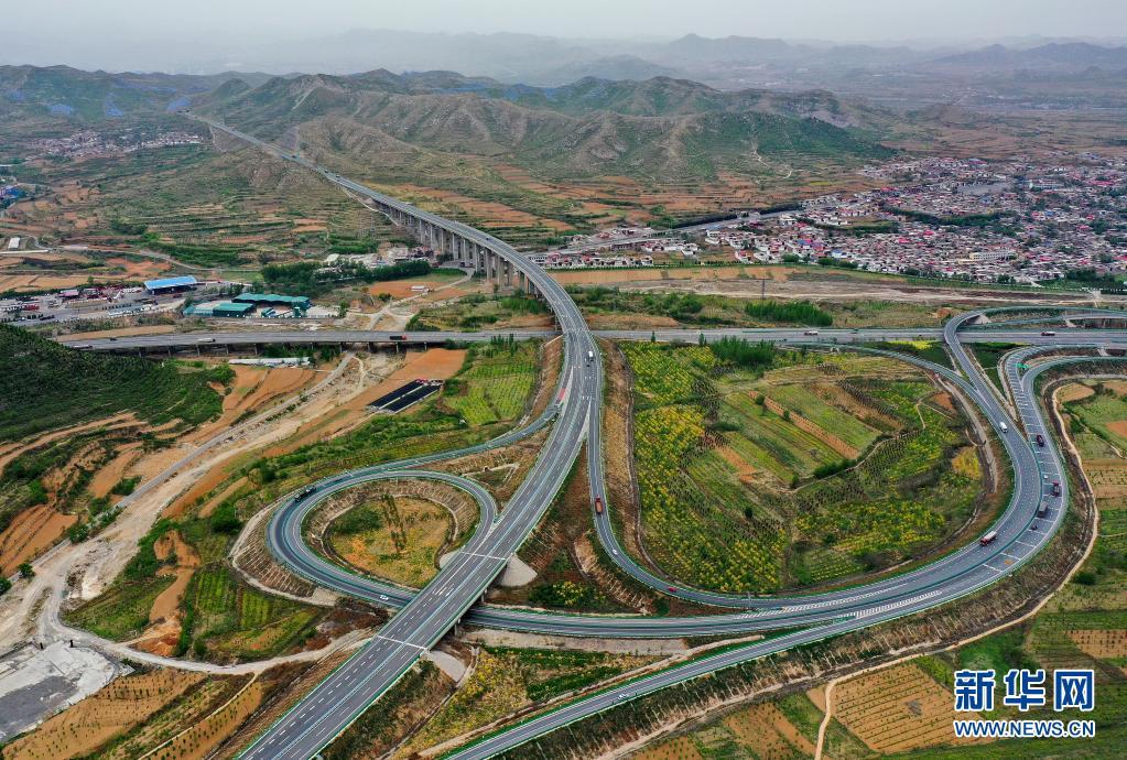 4月27日拍摄的河北省邯郸市境内的太行山高速(无人机照片)。