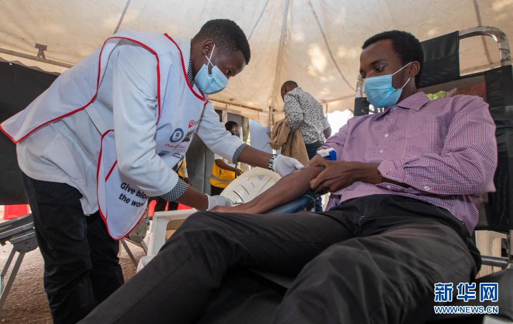 6月14日,一名男子在肯尼亚首都内罗毕献血。新华社记者 张宇 摄