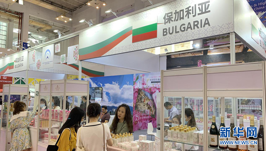 6月9日,参观者在博览会上挑选来自保加利亚的护肤品。