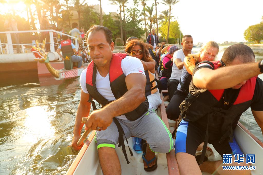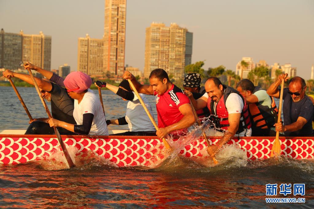 6月14日,在埃及首都开罗,埃及龙舟文化体验基地的龙舟队在尼罗河上参加龙舟竞赛。新华社记者 隋先凯 摄