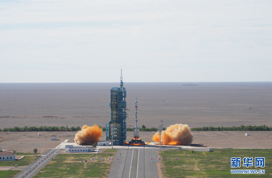 6月17日,搭载着神舟十二号载人飞船的长征二号F遥十二运载火箭在酒泉卫星发射中心点火升空。新华社记者 李刚 摄