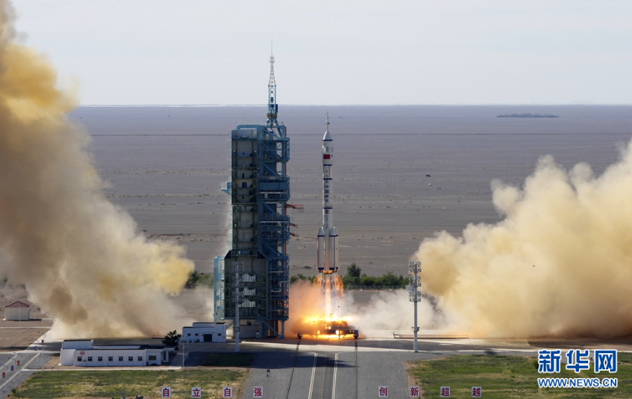 6月17日,搭载着神舟十二号载人飞船的长征二号F遥十二运载火箭在酒泉卫星发射中心点火升空。新华社记者 李刚 摄