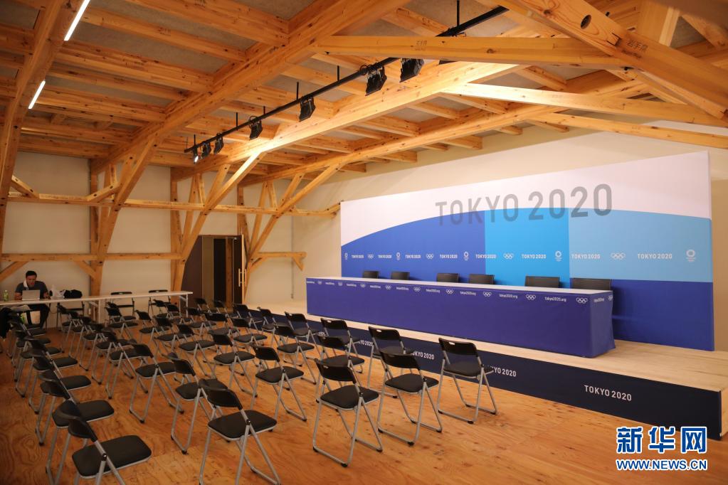 这是6月20日在东京奥运会奥运村内拍摄的新闻发布厅。