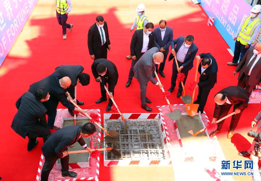 6月17日,嘉宾在埃及开罗附近的埃及新行政首都中央商务区标志塔参加该塔的封顶仪式。新华社记者 隋先凯 摄