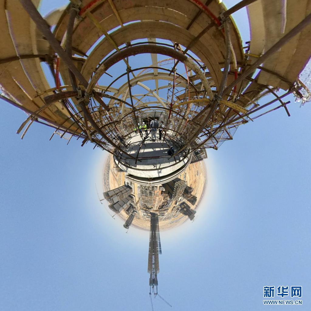 这是6月17日在埃及开罗附近拍摄的埃及新行政首都中央商务区标志塔(全景相机拍摄)。新华社记者 隋先凯 摄