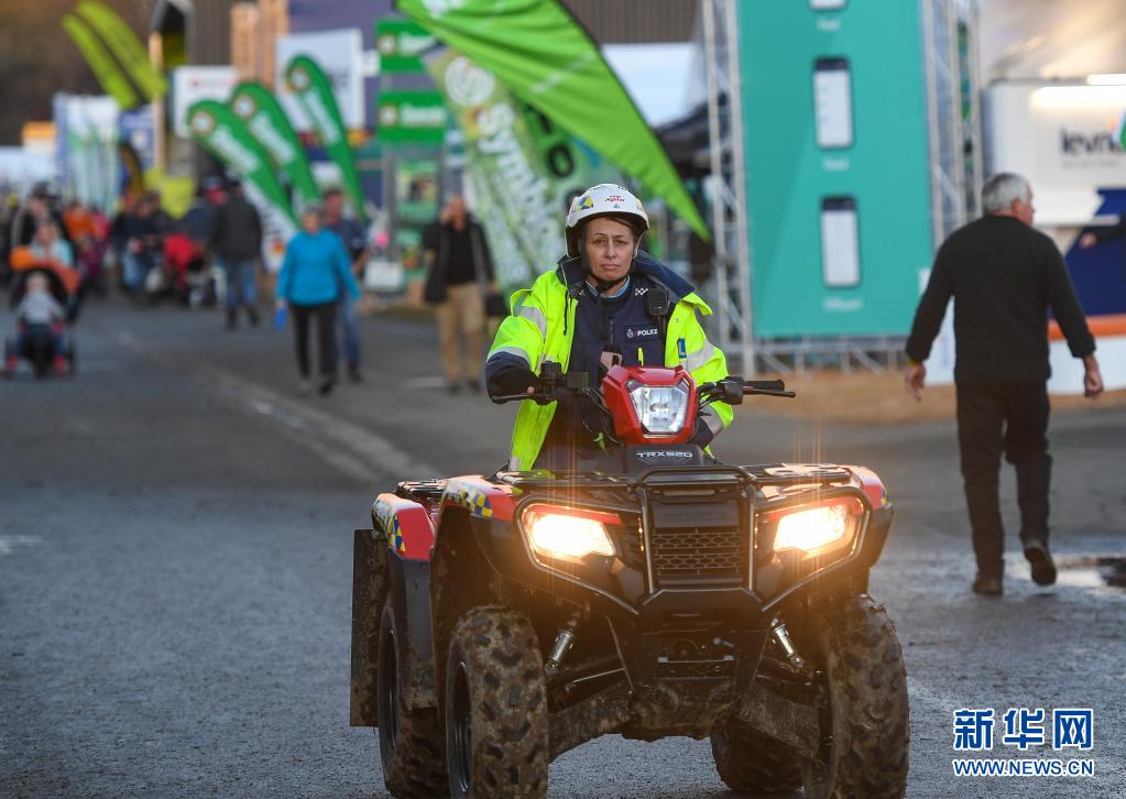 6月17日,在新西兰汉密尔顿举行的国际农业博览会上,警察驾驶专用车辆在现场巡逻执勤。