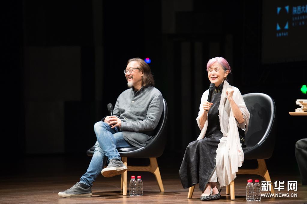 6月17日,赖声川、丁乃竺(右)在陕西大剧院与上剧场战略合作发布会上与观众交流。新华社记者 魏翔 摄