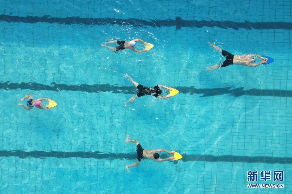 夏至时节,河北省沙河市市民走进游泳池戏水休闲,尽享夏日清凉。