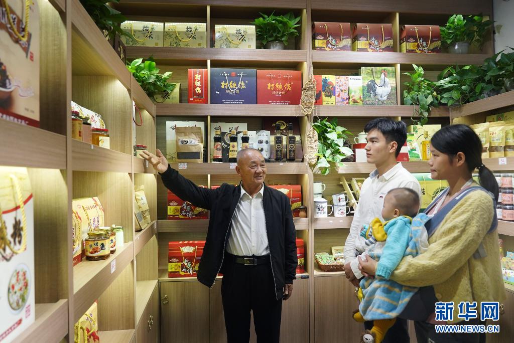 江西省赣州市于都县梓山镇潭头村村民孙观发(左一)向游客介绍当地的特色农产品(2020年10月21日摄)。新华社记者 万象 摄 “去年家里收入22万元,在过去想都不敢想。”红军烈士后代孙观发的话里,透着发自内心的幸福。 民族要复兴,乡村必振兴。脱贫摘帽不是终点,而是新生活新奋斗的起点。 走过百年路,再启新征程。 站在新的历史起点上,世界百年未有之大变局加速演进,疫情仍在全球不少国家蔓延,国内发展不平衡不充分问题依然突出……越是接近目标,路越陡、浪更急。 “立足新发展阶段、贯彻新发展理念、构建新发展格局,推动高质量发展,是当前和今后一个时期全党全国必须抓紧抓好的工作。”习近平总书记说。 发展的理念既一以贯之,又不断创新、与时俱进; 面向未来,新发展理念正有力指引各地发展实践,走上高质量发展的宽阔大道。
