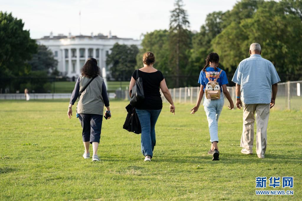 6月22日,游客在美国首都华盛顿的白宫附近游览。 美国白宫应对新冠疫情协调专员津茨22日证实,美国无法完成在7月4日独立日前让70%成年人接种至少一剂新冠疫苗的目标。 新华社记者 刘杰 摄