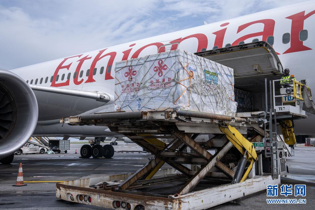 6月23日,在科特迪瓦阿比让国际机场,中国援助的新冠疫苗从飞机上卸下。