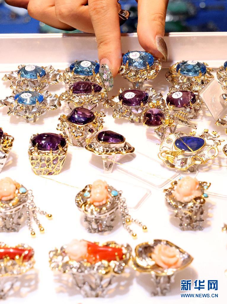 当日,2021上海国际珠宝首饰展览会在上海世博展览馆揭幕,来自世界各地的800多家参展商参展。