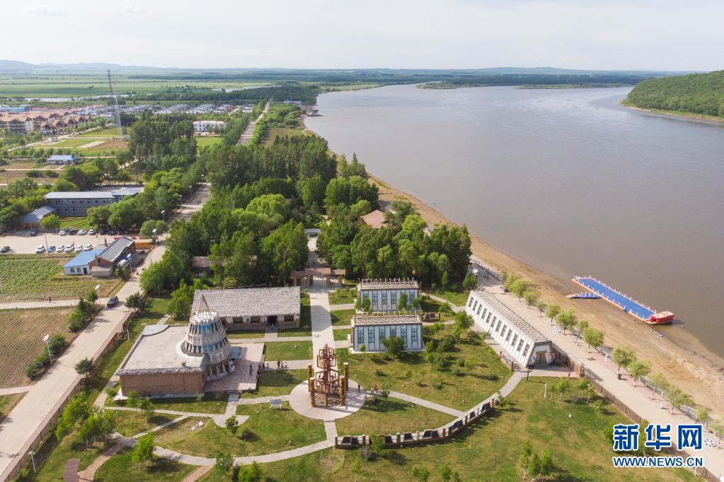 这是6月23日拍摄的黑龙江省双鸭山市饶河县四排赫哲族乡四排村赫哲风情园(无人机照片)。新华社记者 张涛 摄