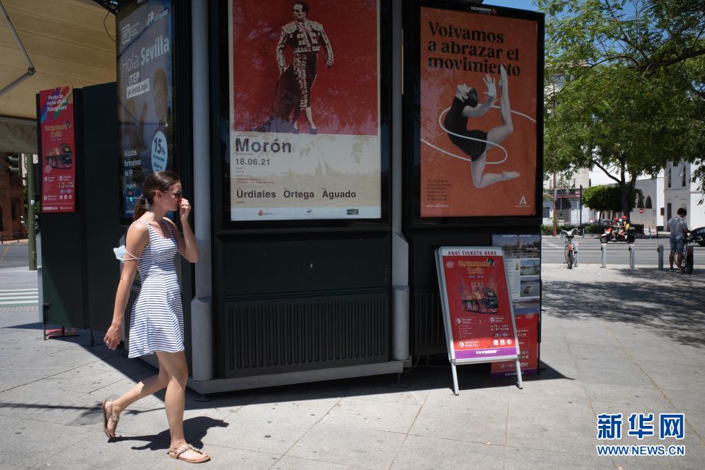 6月26日,一名女子走在西班牙塞维利亚街头。