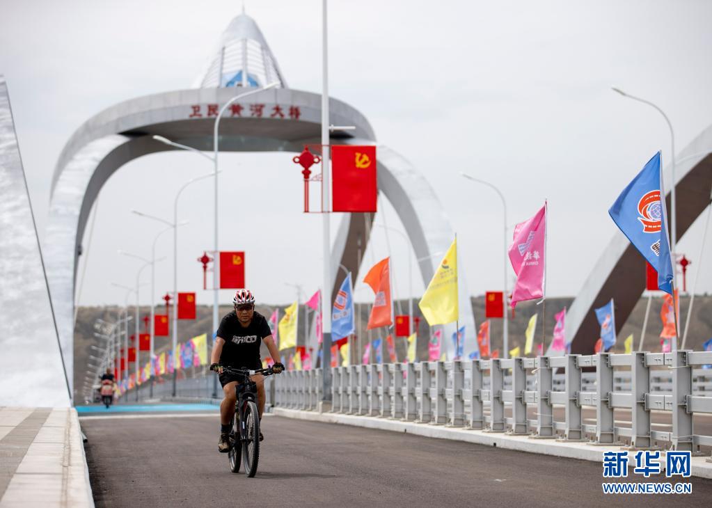 6月28日,市民骑行通过中卫卫民黄河大桥。 当日,宁夏中卫卫民黄河大桥建成通车。该桥位于黄河中卫段,是宁夏境内第18座跨越黄河的公路桥梁。 新华社记者 杨植森 摄