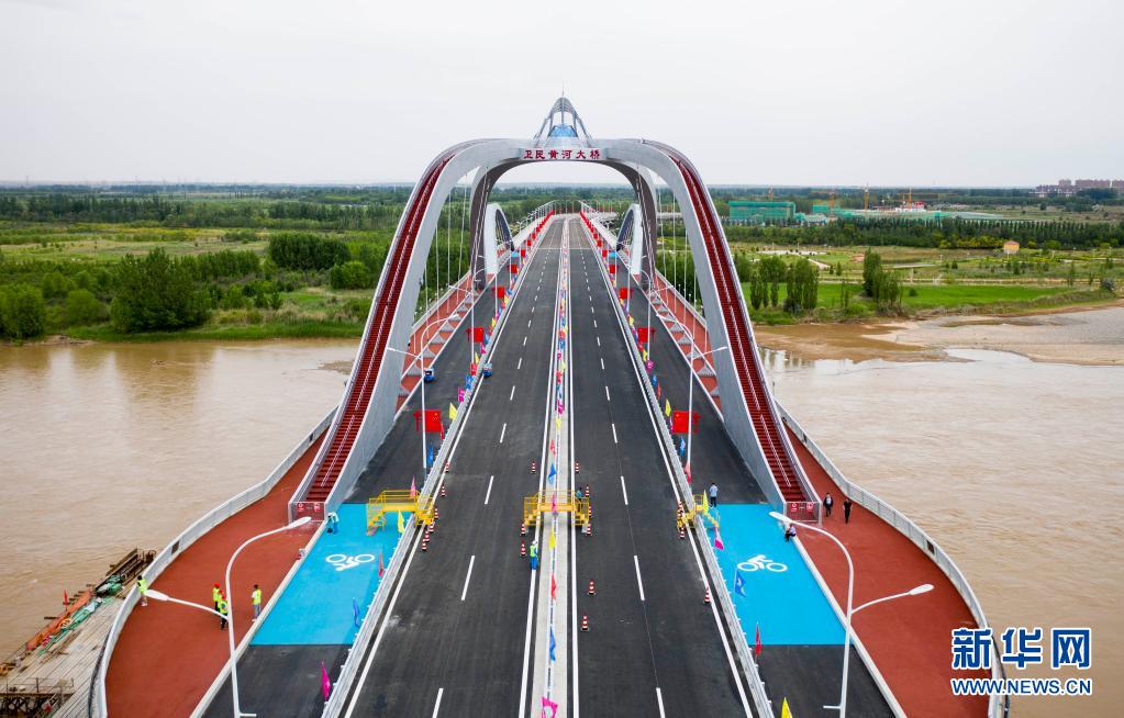 6月28日拍摄的中卫卫民黄河大桥(无人机照片)。 当日,宁夏中卫卫民黄河大桥建成通车。该桥位于黄河中卫段,是宁夏境内第18座跨越黄河的公路桥梁。 新华社记者 杨植森 摄