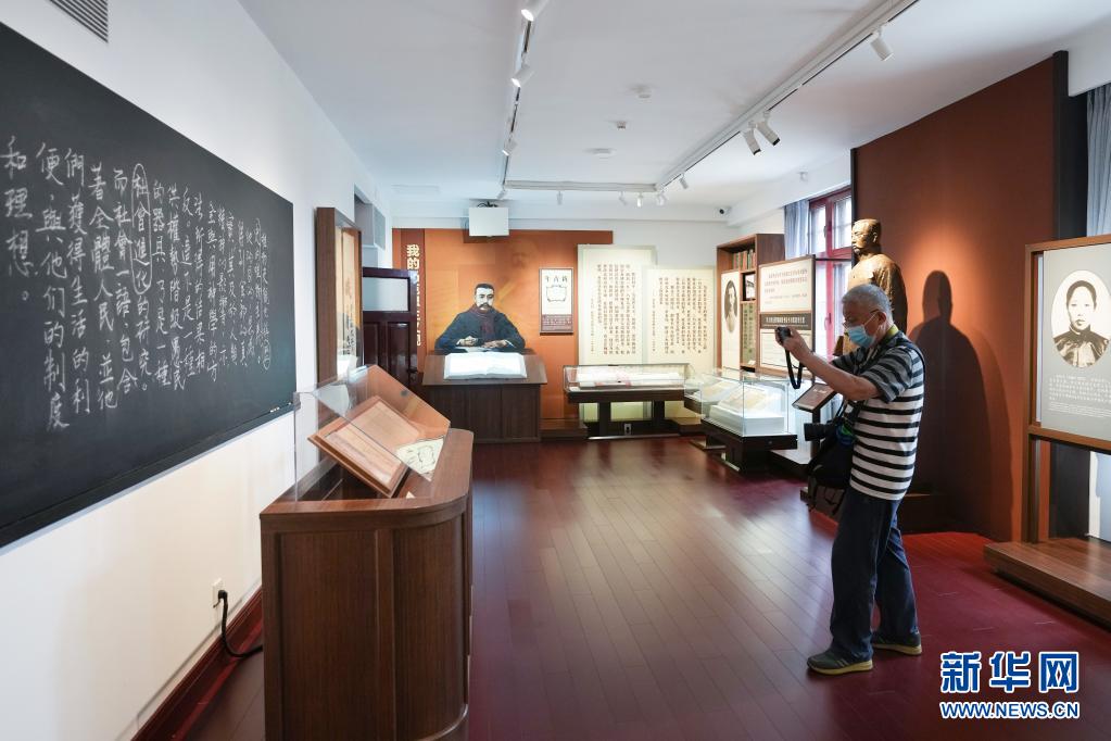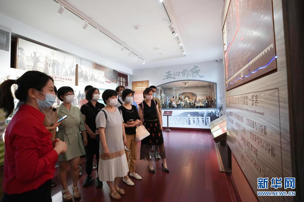 6月29日,参观者在北大红楼内参观。 修缮后的北大红楼旧址6月29日起重新向公众开放,“光辉伟业 红色序章——北大红楼与中国共产党早期北京革命活动”主题展览也于同日亮相,丰富的图片、文物带领观众追寻红色起点,传承红色血脉,汲取前行力量。 新华社记者 鞠焕宗 摄