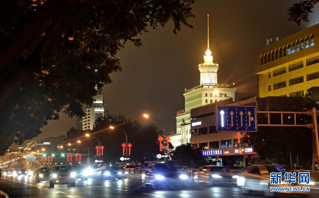 彩灯装扮的北京市复兴路(6月28日摄)。