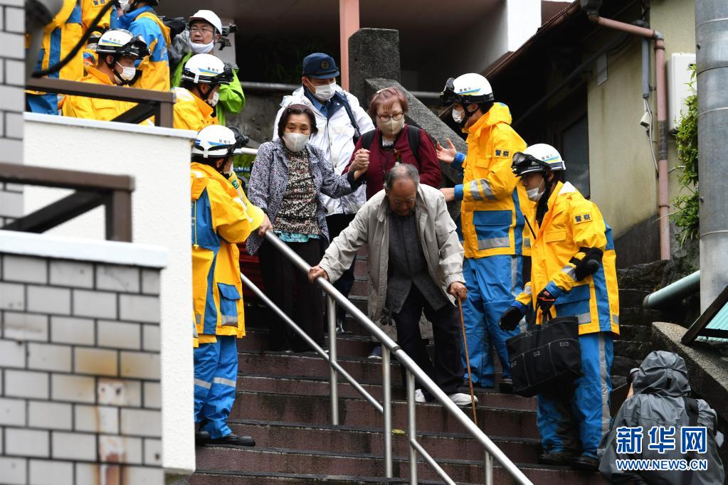 7月4日,救援人员在日本静冈县热海市协助转移当地居民。
