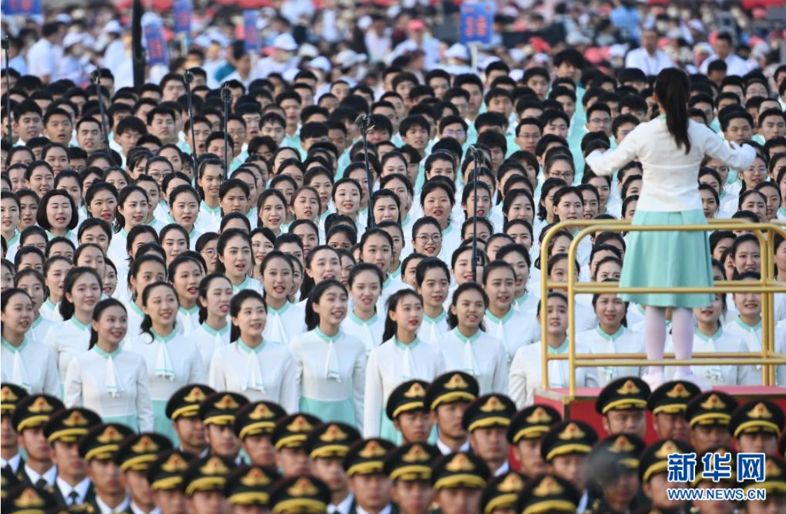 7月1日上午,庆祝中国共产党成立100周年大会在北京天安门广场隆重举行。这是大会开始前,合唱团在准备。